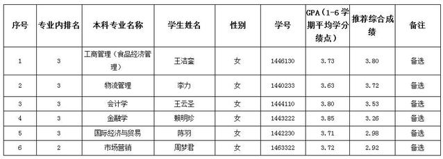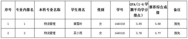 根据《威尼斯144777欢迎您2018年推荐优秀应届本科毕业生免试攻读硕士学位研究生工作实施办法 》的意见和《威尼斯144777欢迎您关于2018年优秀本科毕业生免试攻读硕士研究生的推荐办法》规定,物流管理专业推免名单和各个专业备选人名单如下: