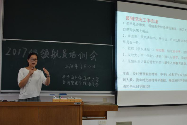 培训临近尾声,院团委书记王方方老师对大家的工作也提出了“三心”建议:分别是“耐心、真心、平常心”。在工作中,明确自身工作的要求与职责,注重“引导”新生,积极协助新生辅导员展开工作,注意学习与工作时间的分配。最后,王方方老师表示:希望全体领航员在引领的过程中,能成为更好的学长学姐,成为更好的经管学子,更好的自己。