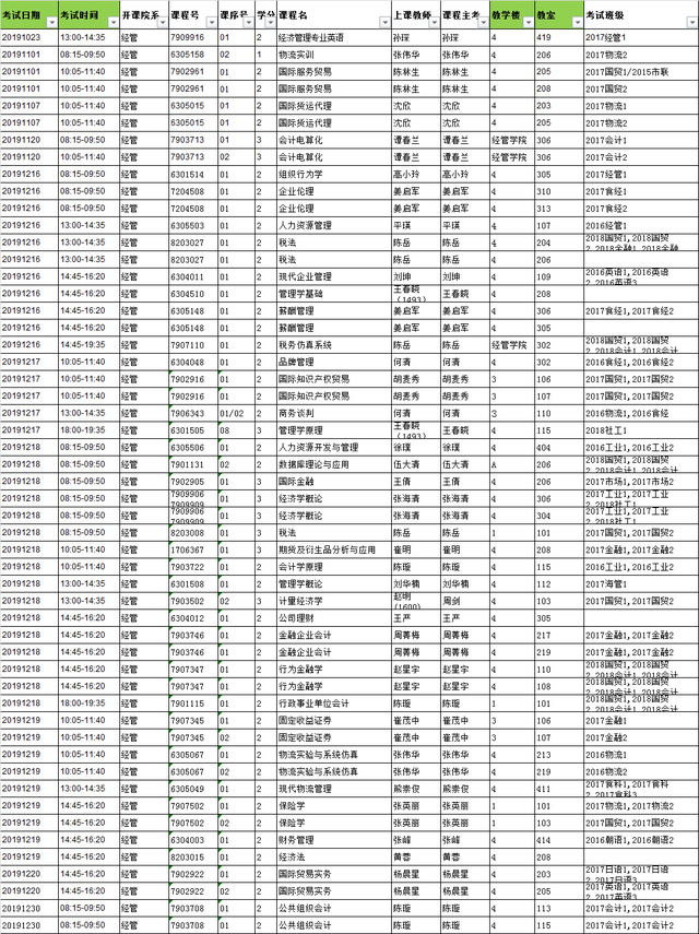 2019-2020学年秋季学期威尼斯144777欢迎您院排考试安排