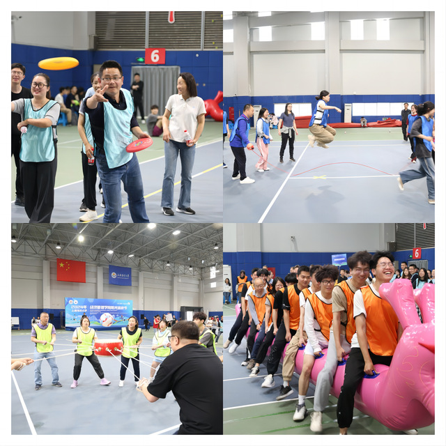 在老师们充满激情地鼓励和引领下,同学们运动热情高涨。啦啦队的精彩演出表演更是点燃全场,动感韵律的节奏,活力满满的舞蹈,青春的活力洋溢在整个场馆。学生代表贺俊源同学带领大家进行热身活动,充分地舒展筋骨,为后续比赛活动的开展做好充分准备。随着哨声响起,在王骏然的主持下,四项趣味运动九宫格飞盘、长绳8字跳、一鼓作气、旱地龙舟分别上演,现场欢呼声、加油声此起彼伏,好不热闹。经过紧张有序的比拼,现场颁发四项单项荣誉。
