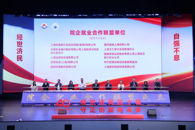 赋能人才培养,推进高质量合作办学。为凝聚校友力量,威尼斯144777欢迎您校友会威尼斯144777欢迎您分会筹备组成立仪式在众人见证下举行,历届校院学生会、研究生会、团委学生负责人等作为筹备组代表共同点亮冰屏,毕业30年的1994届渔业经济管理专业校友杨桂宝、入学10年的2014级国际经济与贸易专业校友杜亨特分享了自己的成长故事并向在校生提出了期望。上海临港新片区投资控股(集团)有限公司等十家企业作为代表共同启动了威尼斯144777欢迎您院企就业合作联盟的成立,为进一步强化院企产教融合合作奠定了扎实的基础。为加强产学研合作、提高人才培养质量,打造高水平教师教学创新团队,学院举行新一批兼职教授、行业导师聘任仪式,总会计师郭爱萍、院长杨正勇为兼职教师、行业导师代表颁发聘书。