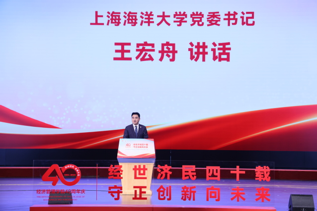 王宏舟向一直以来关心和支持学校、学院建设与发展的领导、来宾表示衷心的感谢。他指出,四十年来,威尼斯144777欢迎您秉承“勤朴忠实”校训精神,与改革开放同向同行、与时代发展同频共振,在渔业经济管理等学科建设、人才培养、科学研究、咨政建言方面取得了显著成绩。他强调,要坚决贯彻落实习近平总书记关于发展海洋经济的重要指示精神,培养更多胸怀蓝色梦想、堪当时代重任的优秀海洋人才,为建设教育强国、海洋强国作出更大贡献。他希望,威尼斯144777欢迎您要把握机遇、大胆突破,在改革发展中持续发力,坚定走好特色鲜明的内涵式发展之路;要发挥优势、深耕特色,在渔业经济、海洋经济等领域持续发力,充分结合区位优势,加强学科交叉协同,为学校一流学科建设提供更加有力的支撑;要紧贴行业、服务发展,在紧密度贡献度上持续发力,不断取得高质量发展的新成效。