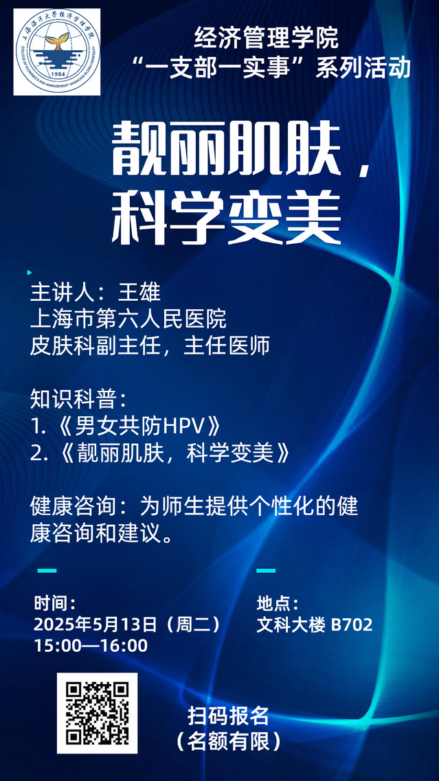 “一支部一实事”系列活动丨王雄:靓丽肌肤,科学变美医疗知识科普和健康咨询(农林经管系党支部)