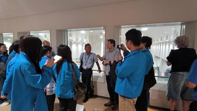 在鲜鱼交易区,娄小波向同学们介绍,丰洲市场对温控、食品安全与追溯机制进行严密设计,市场内整体温度控制在10.5℃左右,鱼类在冷链未中断的状态下完成从捕捞、拍卖到分销的全流程,确保其生食级品质。讲解中提及近年来因海水升温导致鱿鱼数量减少、河豚洄游区域变化等气候影响,引发了学生对“渔业经济对自然系统的依赖性”话题的思考。